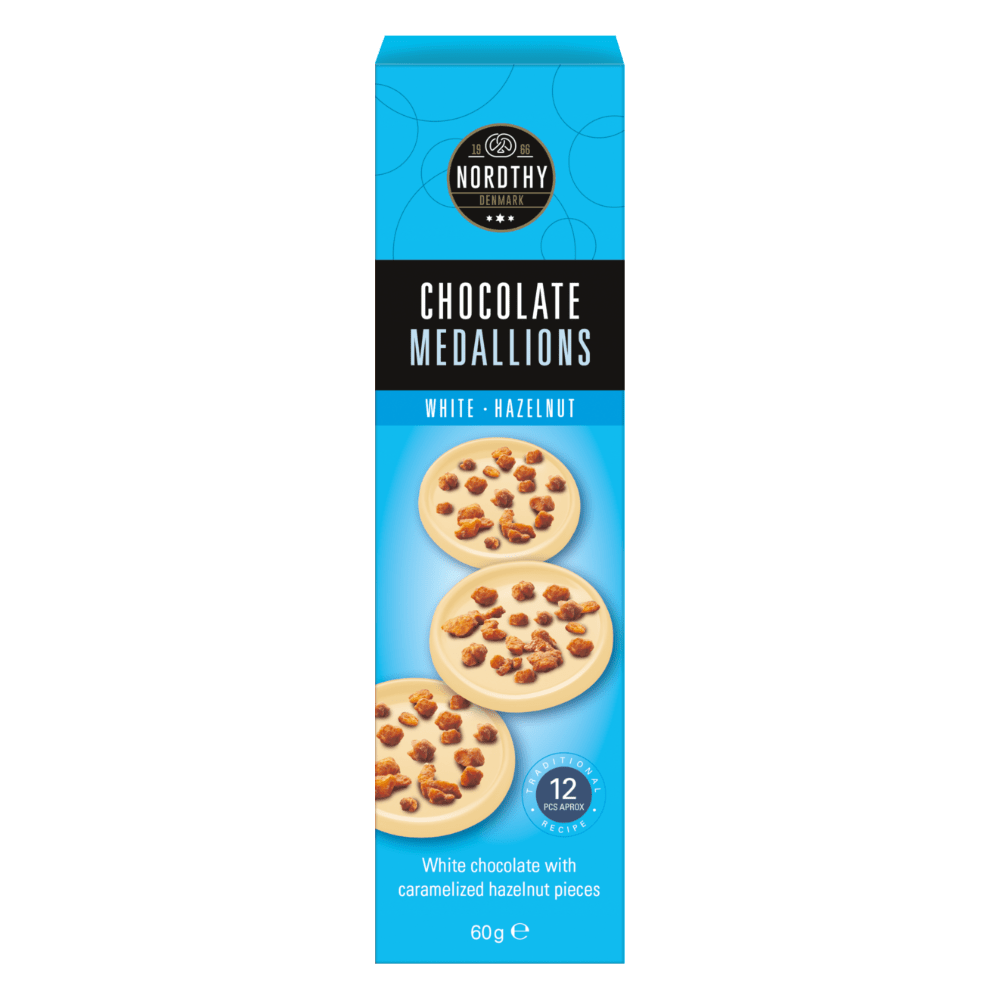 Nordthy Chokolade Medaljoner - hvid hasselnød