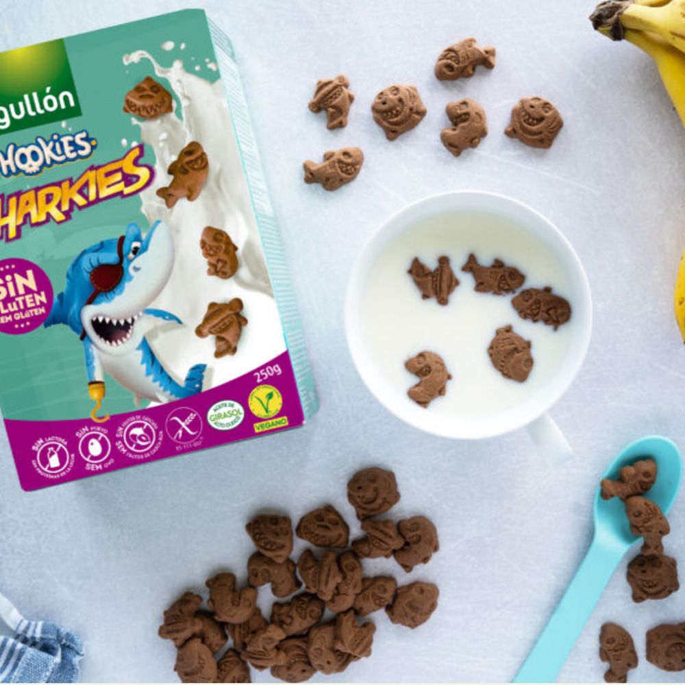 Dyk ned i det dybblå hav og oplev disse glutenfrie og veganske hajkiks. Kiksene er formet som charmerende hajer og er skabt til at gøre din snackoplevelse uforglemmelig. Du kan nyde dine hajkiks til børnefødselsdage, som en farlig snack eller til din morgenmad med mælk ovenpå – kun fantasien sætter grænser for hvordan du kan spise dine Gullón Dibus Sharkies.