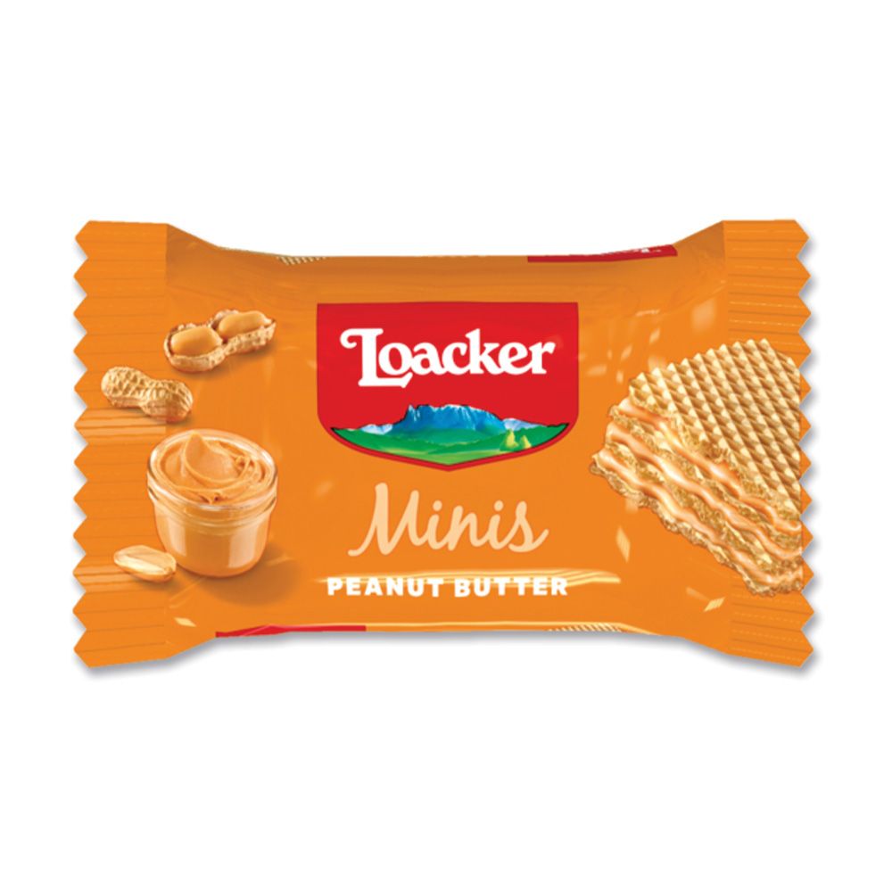 Forkæl dig selv med Loacker Minis Peanut Butter – en lækker kombination af fire sprøde vafler tilsat et strejf af kakao og tre lag fyldigt peanutbuttercreme. Peanuts giver disse små vaffelbider en balance mellem knas og cremet fyld. Perfekt som en sød snack i løbet af dagen eller som en del af en hyggelig kaffepause.