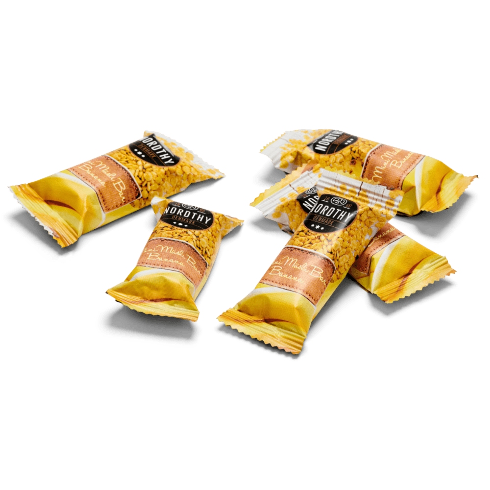 Nordthy Mini Müsli Bars Banan – En lækker mini müsli bar med smag af banan.
