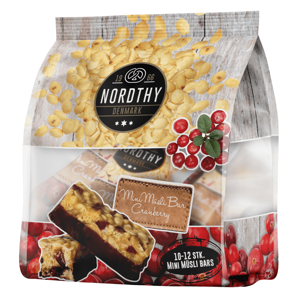 Nordthy Mini Müsli Bars Tranebær – En lækker mini müsli bar med smag af tranebær.